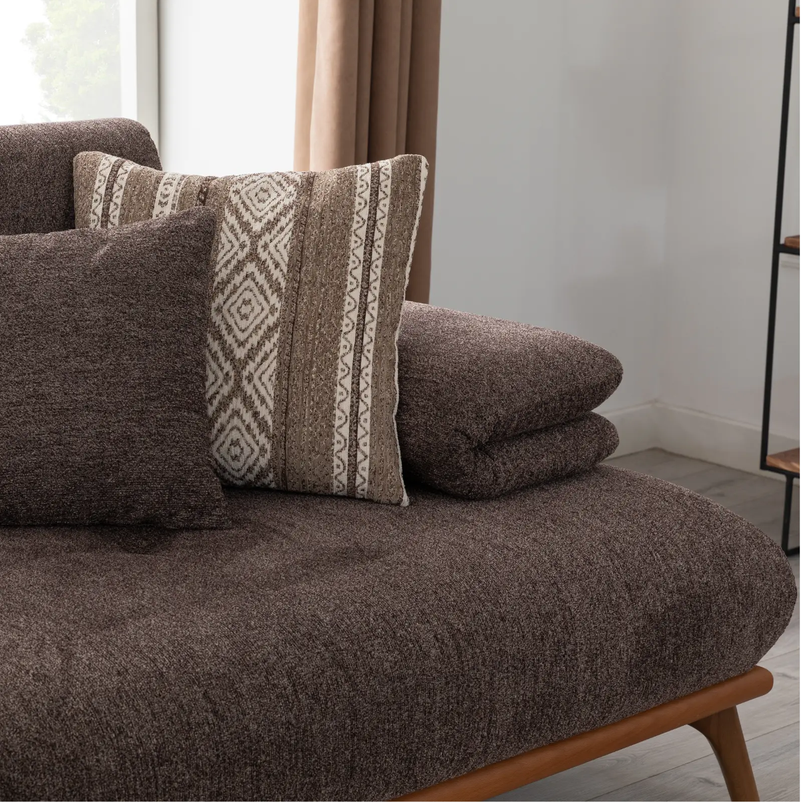 It is a remarkable piece of Turkish furniture that seamlessly blends aesthetics and comfort. With its sophisticated design and meticulously chosen materials, it becomes the centerpiece of any living room. Enhance your relaxation and impress your guests with a sofa set that embodies the elegance and craftsmanship of Turkish design.